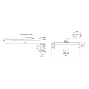 Дверные доводчики «БУЛАТ», предназначены для плавного, автоматического закрытия двери. Подходит для большинства пластиковых, деревянных и металлических дверей. Устанавливаются в квартирах, офисах, промышленных и других помещениях. Функции: регулируемая скорость закрывания двери, регулируемая скорость окончательной доводки, АНТИВАНДАЛЬНЫЙ КЛАПАН. Универсальный установочный размер в серии легких доводчиков (162-168 мм ) за счет овальных отверстий в корпусе. Модель подходит для дверей весом до 120 кг при угле открывания 135° и для дверей весом 60-100 кг при угле открывания 180°. Температурный режим работы от -42 до +50 градусов. Комплект поставки Дверной доводчик Рычаг с шарнирным разъемным соединением колена Крепеж Инструкция по монтажу и эксплуатации, совмещенная с паспортом изделия Шаблон для установки.