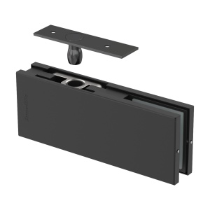 Верхнюю петлю с осью устанавливают на цельностеклянную дверь маятникового типа. Верхняя петля с осью используется совместно с нижней петлей-доводчик.