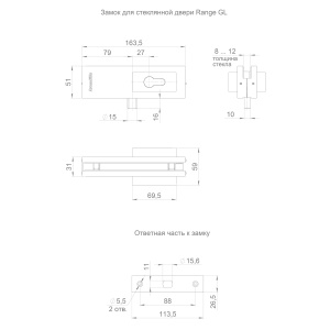 Замок Range.GL.L10 устанавливают на цельностеклянную дверь маятникового типа. В комплект замка входит профильный евроцилиндр 25х10х25 с 3 ключами.