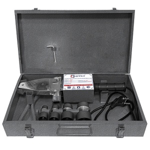 Комплект оборудования для сварки PP-R труб 750+750 Вт СТМ предназначен для ручной полифузионной сварки напорных систем из полипропиленовых труб и фитингов. Сварочный аппарат состоит из металлического корпуса и мечевидной нагревательной панели со встроенными ТЭНами суммарной мощностью 1500 (2 х 750) Вт. Аппарат оснащен выключателями, лампочками контроля температуры. Включение, выключение аппарата и регулировка температуры выполняются при помощи встроенного термостата. Диапазон регулирования – 50–300 °С. Время нагрева аппарата до рабочей температуры (260 °С) – не более 10 мин. Нагревательная панель и сменные насадки изготовлены из алюминиевого сплава, насадки имеют антиадгезионное покрытие (тефлон). Комплект поставки: -металлический ящик - 1 шт. -аппарат для сварки - 1 шт. -подставка под аппарат для сварки - 1 шт. -комплект тефлоновых насадок диаметром 20 мм, 25 мм, 32 мм и 40 мм -инструкция по эксплуатации - 1 шт.