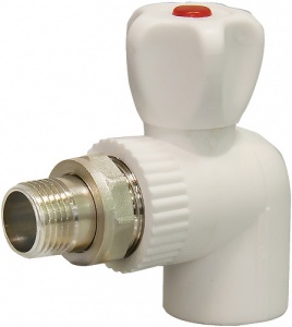 Кран шаровой PP-R для радиатора угловой DN 20х1/2" СТМ ПЛАСТ предназначен для подключения радиатора к трубопроводу из полипропиленовых труб и позволяет перекрывать поток теплоносителя через радиатор. Кран можно использовать в трубопроводах систем питьевого, хозяйственно-бытового и промышленного назначения, систем холодного и горячего водоснабжения. Изготавливается из полипропилена (Polypropylene random copolymer – полипропилен тип 3). Подключение крана к радиатору производится с помощью латунного никелированного полусгона, закрепленного на закладной детали накидной гайкой. Монтаж осуществляется методом раструбной сварки.