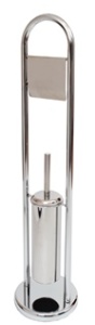 Напольный металлический сантехнический ерш для поддержания чистоты и гигиеничности чаши унитаза. Ерш с густым и прочным ворсом легко справляется с различными загрязнениями. Специальный держатель для туалетной бумаги оптимизирует пространство и избавляет от необходимости поиска подходящего держателя. Корпус изделия выполнен из прочного хромированного металла, который надолго сохраняет свой внешний  вид. Размеры 79*19*19 см.