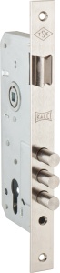 Корпус замок врезной с подшипником 3 ригеля, 1 защёлка. Межосевое расстояние 85 мм. Расстояние от планки до центра цилиндра 45мм. Лицевая пластина шириной 22мм.