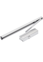 Доводчик дверной, механо-гидравлический, двухскоростной, рычаг со скользящей тягой «SL», с функцией регулировки угла открытия и одновременной фиксации двери в открытом положении «НО». Возможно отключить функцию «НО». В этом случае необходима установка наружного ограничителя открывания двери.