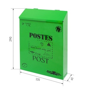 Ящик почтовый индивидуальный. Материал - сталь. Цвет - салатовый. Размеры - 220*290*65мм. Замок с 2 ключами.
