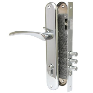 Серия "Классика". Замок врезной с ручками. Предназначен для установки в деревянные двери толщиной до 40мм, правого и левого открывания. Дверь может быть закрыта на защелку и открыта с помощью фалевой ручки при открытом засове замка. Три стальных ригеля круглого сечения диаметром 12мм, вылет 20мм. Универсальная защелка. Стальной корпус с подшипником, покрыт полимерной краской. Межосевое расстояние 85 мм. Удаление ключевого отверстия 45мм. Материал ручек алюминиевый сплав. Комплектация: цилиндровый механизм 68мм, 6 ключей, ответная планка, винтовые стяжки.