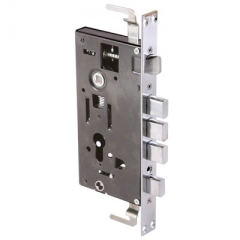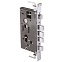 Замок врезной цилиндровый с защелкой и задвижкой, без механизма секрета. Предназначен для установки в китайские металлические двери, в качестве основного замка. Реверсивная защелка позволяет устанавливать замок на правые и левые двери. Три прямоугольных стальных ригеля. Вылет ригелей 20мм. 3 точки запирания. Корпус замка - сталь, толщиной 0,9мм. Удаление ключевого отверстия 60мм. Межосевое расстояние 68мм. Расстояние от центра механизма секрета до задвижки 52мм. Цвет торцевой планки - хром, ширина 24мм.