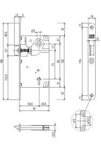 Описание Врезной замок для межкомнатных дверей имеет только защелку (без ригеля), лицевая планка шириной 18 мм с закругленными концами. Стальной корпус замка оцинкован, полностью закрыт и защищает механизм от пыли, стружки, грязи, опилок и другого мелкого мусора. Лицевая планка имеет отделку "старая бронза". Защелка универсальная, то есть не зависит от "левого" или "правого" закрывания двери, регулируется нажимной ручкой, квадрат 8 мм. Защелка может быть зафиксирована с помощью сантехнического поворотника (заказывается отдельно), квадрат 6 мм. В дверную коробку монтируется ответная часть: - ответная часть "с языком" - для традиционных дверей (без притвора) - ответная часть "без языка" (прямая) - для дверей с четвертью (с притвором) Ответные части не входят в комплектацию замка, заказываются отдельно.