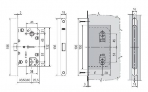 Характеристики Артикул:B061025034640 Производитель:AGB (Италия) Цвет:матовый хром тип запирания:сантехническая защелка бэксет:50 мм ригель:магнитный выдвигающийся ширина лицевой планки:18 мм высота лицевой планки:196 мм межосевое расстояние:96 мм вес:0,375 кг заводская упаковка - коробка, картон::50