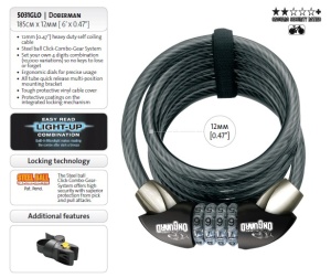 Тросовый 4-х цифровой кодовый замок с самостоятельным выбором кода Светодиодная подсветка кода – удобно! Прочный гибкий стальной трос, диаметр 12мм Длина троса 185мм Жесткая виниловая защита троса и запираемых поверхностей