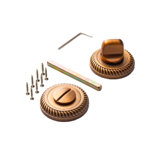 Завертка выполнена в стилистике дверных ручек, имеет тот же цвет, аналогичную форму розетки и снабжена удобным поворотным вертушком.