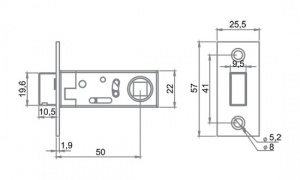 Врезная магнитная защелка "RENZ" Magn 5-50 C для межкомнатных дверей. Благодаря магниту, защелка работает с минимальным шумом и язычок не виден в торце двери. Удаление отверстия под ручку - 50мм. Цвет: белый. В комплектацию входят: пластиковая ответная планка и крепежная фурнитура в цвет изделия. Защелка предназначена для установки фрезерным оборудованием.