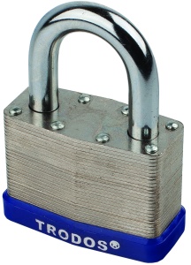 Навесной замок из стальных наборных пластин предназначен для запирания жилых, подсобных помещений, распределительных щитов, гаража и пр. Устойчивый к взлому корпус из стальных пластин, закаленная дужка. В комплекте 2 английских ключа, упакован в блистер. Замок запирается автоматически нажатием на дужку замка.