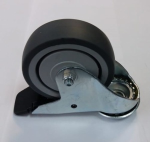 Колесо поворотное 75 мм. под штырь с тормозом TPR серая резина (50кг) (NF-0127) (10495) (50)