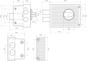 Количество ключей 4 Защелка Нет Назначение для деревянных дверей Общеe Код товара 11493 Производитель Стандарт Страна производства РОССИЯ Цвет Черный Габариты и веc Вес (брутто) 0.81 Упакoвка Штук в коробке 16 Транспортная упаковка 1 Ширина 0.08 Длина 0.12 Высота 0.105 Особеннoсти Класс секретности 1 класс Тип механизма секретности Цилиндровый, английский ключ Удаление ключевого отверстия (Backset) 60 мм Тип замка Замки накладные Замок накладной цилиндровый с вертушкой. Предназначен для установки на деревянные двери. Засов из двух цилиндрических ригелей диаметром 14 мм, с максимальным вылетом 25 мм. Удаление ключевого отверстия - 60 мм. Габариты замка - 99х75х24 мм. Комплектация - 4 ключа, запорная планка, накладка. Закрывание и открывание замка изнутри производится ручкой, снаружи ключом.