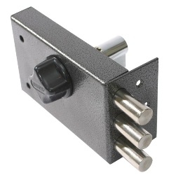 Замок накладной цилиндровый с вертушкой. Предназначен для установки на деревянные двери. Засов из трех цилиндрических ригелей диаметром 14 мм, с максимальным вылетом 30 мм. Удаление ключевого отверстия - 60 мм. Габариты замка - 130х80х24 мм. Комплектация - 5 ключей, запорная планка, накладка. Механизм замка под перфо-ключ, идет совместно с корпусом. Закрывание и открывание замка изнутри производится вертушкой, снаружи ключом.