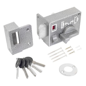 Замок накладной цилиндровый с вертушкой и засовом-защелкой. Предназначен для установки на деревянные двери. Комплектация - 5 ключей, запорная планка, накладка. Механизм замка под англ.ключ, идет совместно с корпусом. Закрывание и открывание замка изнутри производится вертушкой, снаружи ключом. Имеет возможность ночной фиксации засова изнутри.