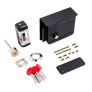 Замок накладной с защитной пластиной от попадания влаги в корпус замка. Пластина используется и как установочная при монтаже. Предназначен для установки на тамбурные двери, гаражные ворота, калитки, двери складских помещений и может работать при температуре от -40 до +50 °C.