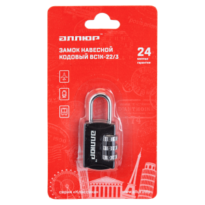 Замок кодовый. Предназначен для защиты от несанкционированного вскрытия сумок, чемоданов и др. багажа. Замок запирается дужкой диаметром 3 мм. Габариты замка - 55х22х10 мм. Диапазон цифр в каждом значении - от 0 до 9. Материал корпуса - цинковый сплав, дужки -сталь.