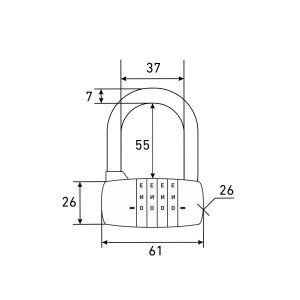 никальный кодовый замок. Комбинация задается 4-мя буквами кириллицы. Перекодировка возможна сколько угодно раз. Предназначен для дверей ящиков, хозяйственных построек, ангаров и пр.помещений. Замок запирается дужкой диаметром 7 мм. Проем дужки 55 мм по высоте и 37 мм по ширине. Габариты замка - 61х88х26 мм