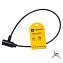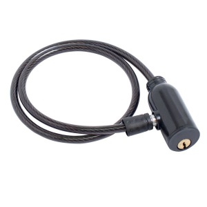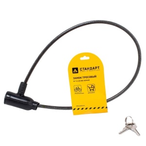 Замок навесной с тросом. Материал корпуса - сталь в пластиковом кожухе. Стальной трос- в пластиковой оплетке (6мм - диаметр, 600мм - длина). Цилиндровый механизм секрета, в комплекте 2 английских ключа.