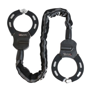Замок- наручники с цепью предназначен для защиты от краж электросамокатов, велосипедов, мототехники, лодок и т.п. Цепь- закаленная легированная сталь (d6 длиной 650 мм) в защитном светоотражающем кожухе.