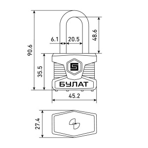Замок навесной «БУЛАТ» предназначен для запирания распределительных щитов, почтовых ящиков и прочих помещений. Замок запирается автоматически при нажатии на скобу без использования ключа. Замок обладает длительным сроком эксплуатации. Размер корпуса: 45х36х27 мм Диаметр дужки: 6 мм Проем дужки по высоте: 48,5 мм Проем дужки по ширине: 21 мм