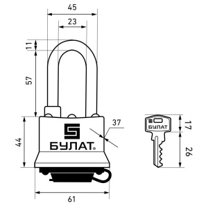 ВС 0350-01 всепогодный 5кл. d=11мм,длин.дужка. Замок навесной "БУЛАТ" (6/36)