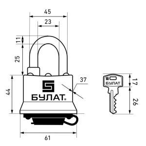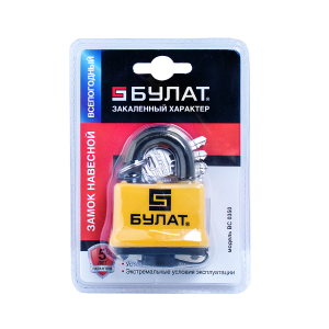 Материал Сталь Запирание Автоматическое Закаленная дужка Да Количество ключей 5 Диаметр дужки 11 мм Штук в минибоксе 6 Назначение всепогодные Общеe Код товара 13455 Производитель БУЛАТ Страна производства КИТАЙ Гарантия 5 лет Габариты и веc Вес (брутто) 0.39 Упакoвка Индивидуальная упаковка Блистер Штук в коробке 36 Ширина 0.11 Длина 0.19 Высота 0.045 Особеннoсти Класс секретности 2 класс Тип механизма секретности Цилиндровый, английский ключ