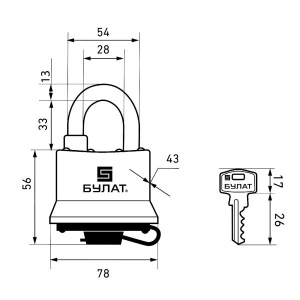 Замок навесной «БУЛАТ» предназначен для запирания, распределительных щитов, почтовых ящиков, гаражей, складов, подвалов и прочих помещений. Пластиковый кожух защищает замок от внешнего воздействия окружающей среды. Замок обладает длительным сроком эксплуатации. Гарантийный срок 5 лет с момента продажи через розничную сеть. Размер корпуса: 78х56х43 мм Диаметр дужки: 13 мм Проем дужки по высоте: 35 мм Проем дужки по ширине: 28 мм