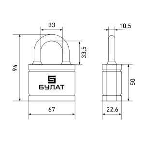 Замок навесной «БУЛАТ» предназначен для запирания распределительных щитов, почтовых ящиков и прочих помещений. Замок запирается автоматически при нажатии на скобу без использования ключа. Замок обладает длительным сроком эксплуатации. Размер корпуса: 67х50х22,6мм Диаметр дужки: 10,5 мм Проем дужки по высоте: 33,5 мм Проем дужки по ширине: 33 мм