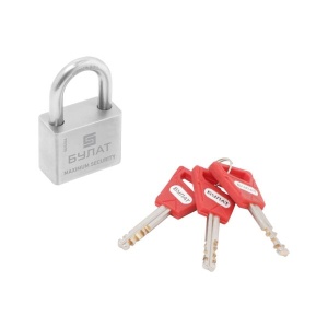 Производитель БУЛАТ Страна производства КИТАЙ Материал Нержавеющая сталь 304 Гарантия 10 лет Вес (брутто) 0.14 Индивидуальная упаковка Блистер Штук в минибоксе 12 Штук в коробке 36 Класс секретности 4 класс Тип механизма секретности Дисковый Запирание Не автоматическое Закаленная дужка Да Количество ключей 3 Диаметр дужки 7 мм