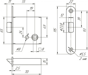 Технические характеристики: Тип механизма защелки Классический Тип упаковки Пакет Удаление квадрата под ручку 55 мм