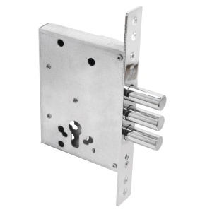 Корпус врезного цилиндрового замка Булат с тремя ригелями предназначен для установки во входные металлические двери. Стальной оцинкованный корпус. Универсальная установка, подходит для левых и правых дверей. Бэксет- 60мм. Выход ригелей- 36мм. Диаметр ригелей -16мм. Открывание-3 полуоборота. В комплект входят: крепежная фурнитура. Цвет лицевой планки- хром.