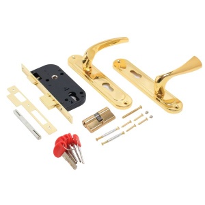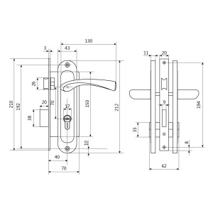 Замок врезной с ручками. Предназначен для установки в деревянные двери толщиной до 40 мм, правого и левого открывания. Дверь может быть закрыта на защелку и открыта с помощью фалевой ручки при открытом засове замка. Прямоугольный засов размером 38х9 мм, с максимальным вылетом 20 мм. Универсальная защелка. Стальной корпус, покрыт полимерной краской. Межосевое расстояние 70 мм. Удаление ключевого отверстия 40 мм. Материал ручек - алюминиевый сплав, планки – сталь. Комплектация: латунный цилиндровый механизм 62 мм, 5 перфоключей, ответная планка, винтовые стяжки, саморезы. Сертифицирован в РФ.