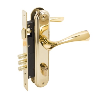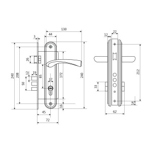 Замок врезной с ручками. Предназначен для установки в деревянные двери толщиной 35-45 мм, правого и левого открывания. Дверь может быть закрыта на защелку и открыта с помощью фалевой ручки при открытом засове замка. Три круглых стальных ригеля диаметром 12 мм и вылетом 20мм. Универсальная защелка. Стальной корпус с подшипником, покрыт полимерной краской. Межосевое расстояние 85 мм. Удаление ключевого отверстия 45мм. Материал ручек - сплав ЦАМ. Комплектация:латунный цилиндровый механизм 62мм, 5 перфоключей, ответная планка, винтовые стяжки.