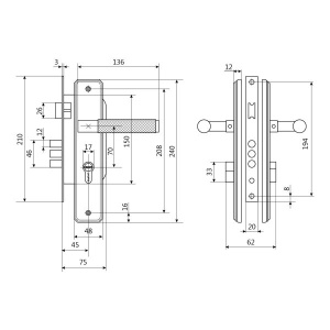 Количество ключей 5 Толщина дверного полотна 30-38 мм Количество ригелей 3 Размер ригеля 12х20 мм Назначение с ручками для деревянных дверей Общеe Код товара 15004 Производитель БУЛАТ Страна производства КИТАЙ Цвет Матовый черный Гарантия 5 лет Габариты и веc Вес (брутто) 2.045 Упакoвка Индивидуальная упаковка Коробка Штук в коробке 12 Ширина 0.15 Длина 0.29 Высота 0.095 Особеннoсти Класс секретности 2 класс Тип механизма секретности Цилиндровый, перфоключ Межосевое расстояние 70 мм Тип двери Деревянные Удаление ключевого отверстия (Backset) 45 мм Наличие ответной планки Да Форма ригелей Круглый Тип замка Замки врезные Замок врезной с ручками. Предназначен для установки в деревянные двери толщиной до 38 мм, правого и левого открывания. Дверь может быть закрыта на защелку и открыта с помощью фалевой ручки при открытом засове замка. Засов из трех цилиндрических ригелей диаметром 12 мм, с максимальным вылетом 19 мм. Универсальная защелка. Стальной корпус, покрыт полимерной краской. Межосевое расстояние 70 мм. Уд